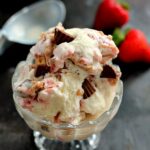 This Strawberry Peanut Butter Swirl Ice Cream is loaded with juicy strawberries and creamy peanut butter, swirled into sweet vanilla cream and then topped with peanut butter cups. And best of all, it's made without an ice cream maker!